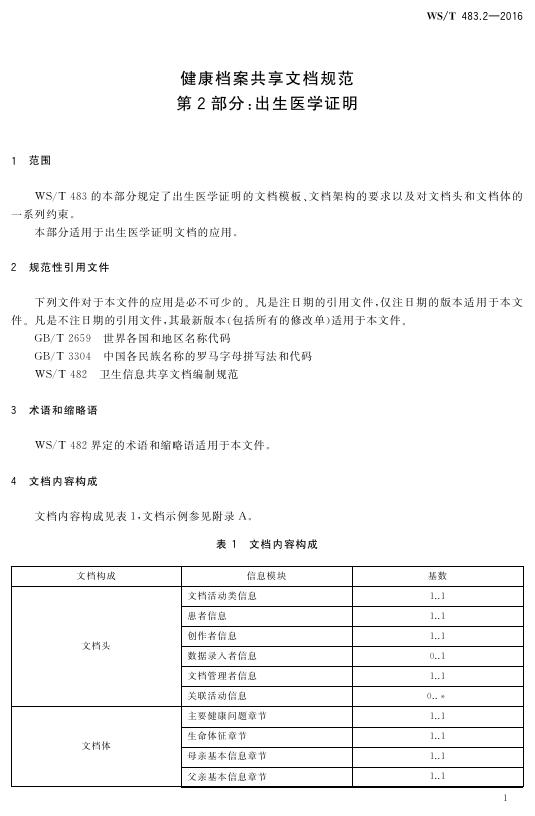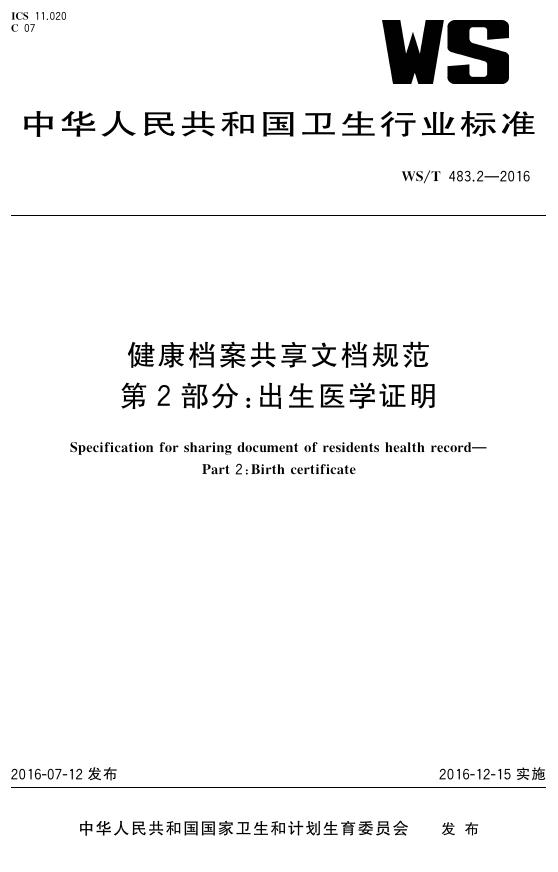 WS/T 483.2-2016 健康档案共享文档规范 第2部分:出生医学证明