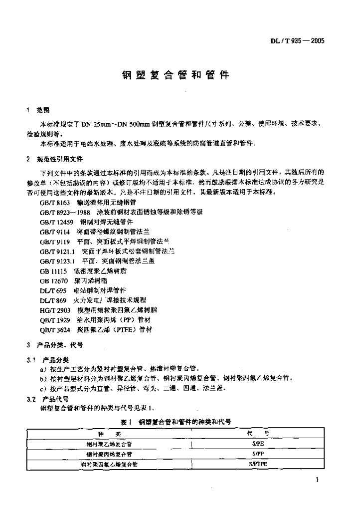 DL/T 935-2005 钢塑复合管和管件