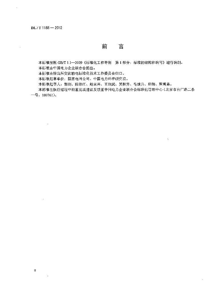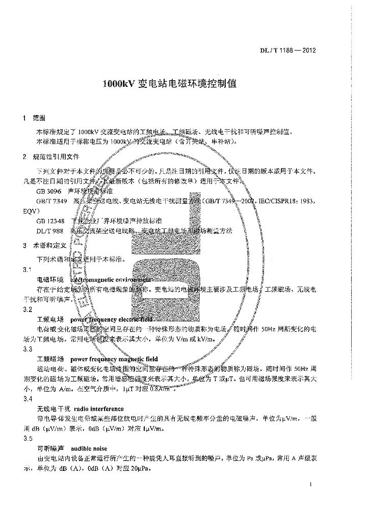 DL/T 1188-2012 1000kV变电站电磁环境控制值