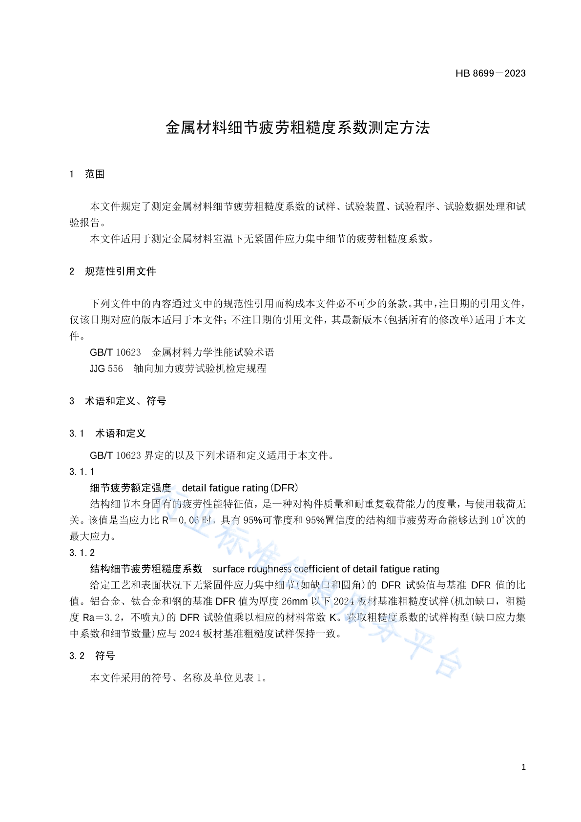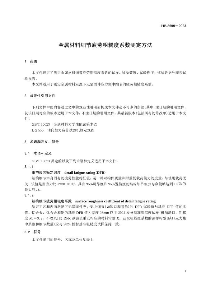 HB 8699-2023 金属材料细节疲劳粗糙度系数测定方法