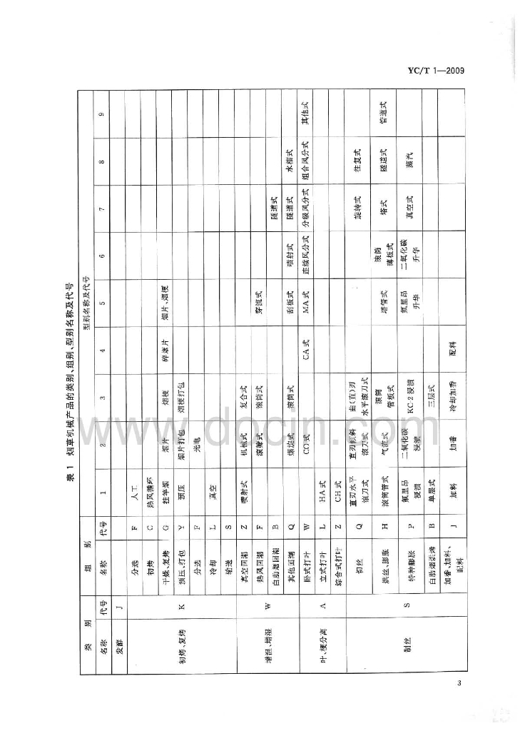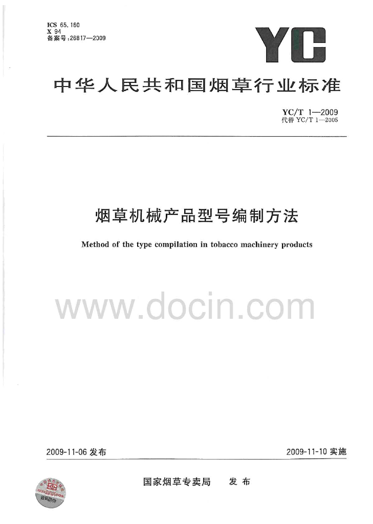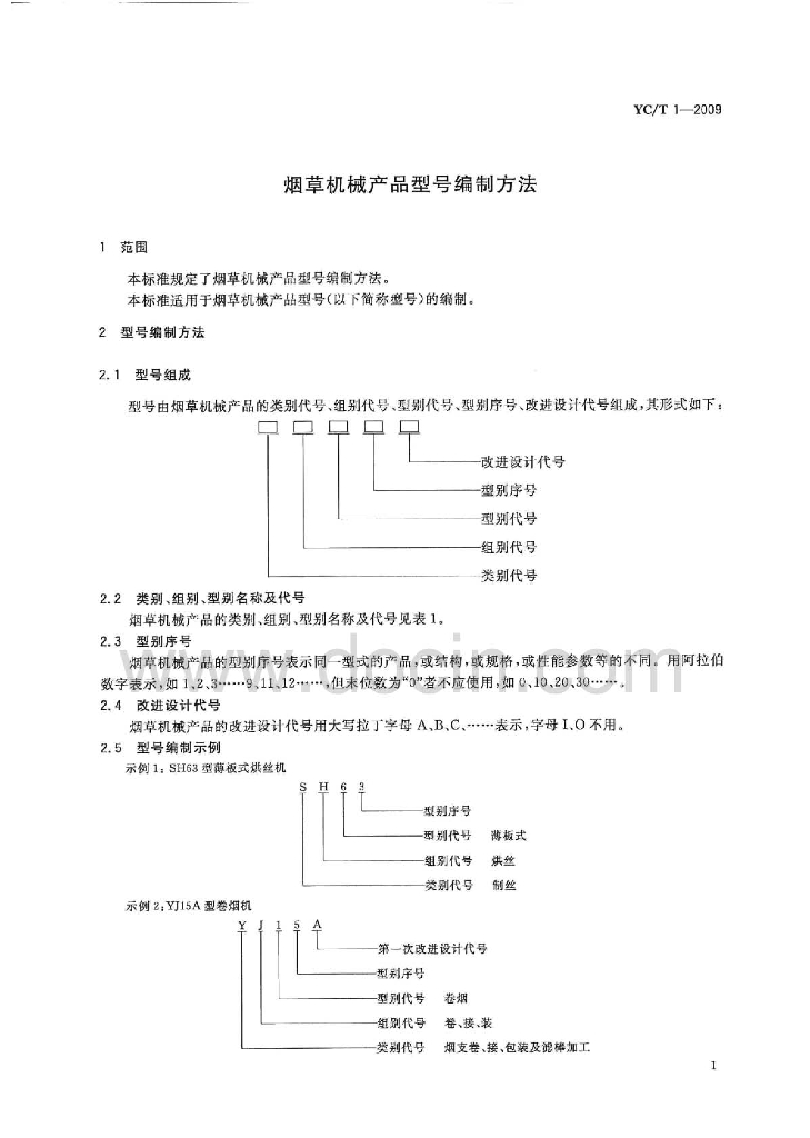 YC/T 1-2009 烟草机械产品型号编制方法