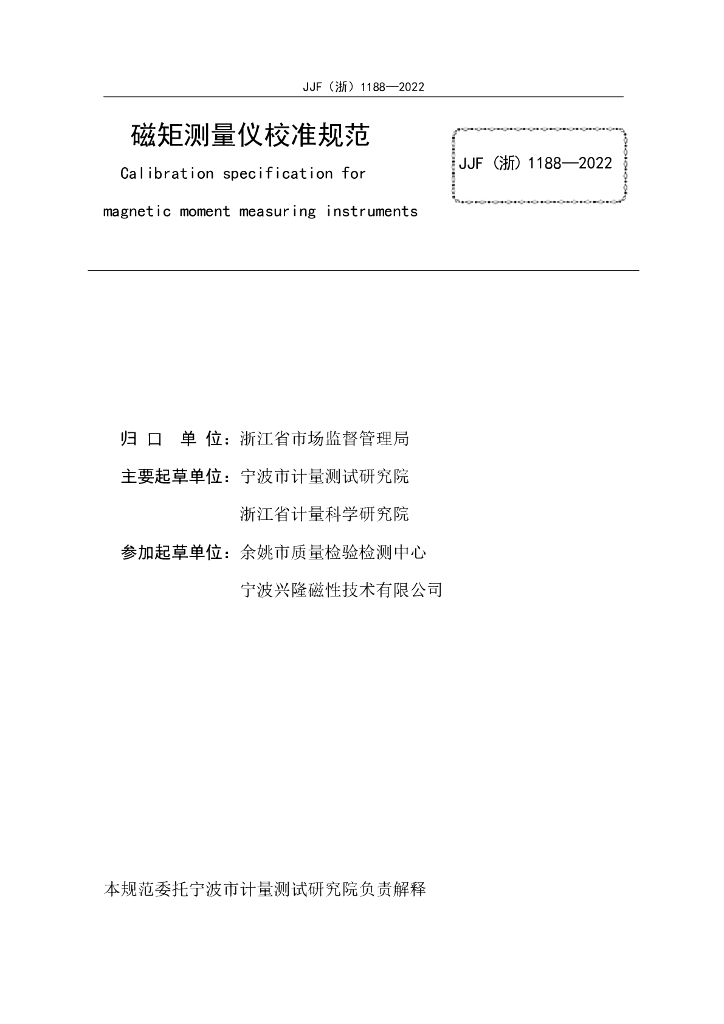 王一民(宁波市计量测试研究院)、虞志书(浙江省计量科学研究院)、陈杭武(宁波市计量测试研究院)、孙梦翔(宁波市计量测试研究院)、冯丹(余姚市质量检验检测中心)、黄可可(宁波兴隆磁性技术有限公司)
