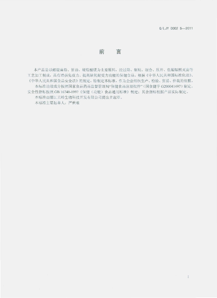 Q/LJY 0002S-2011 高植牌螺旋藻片