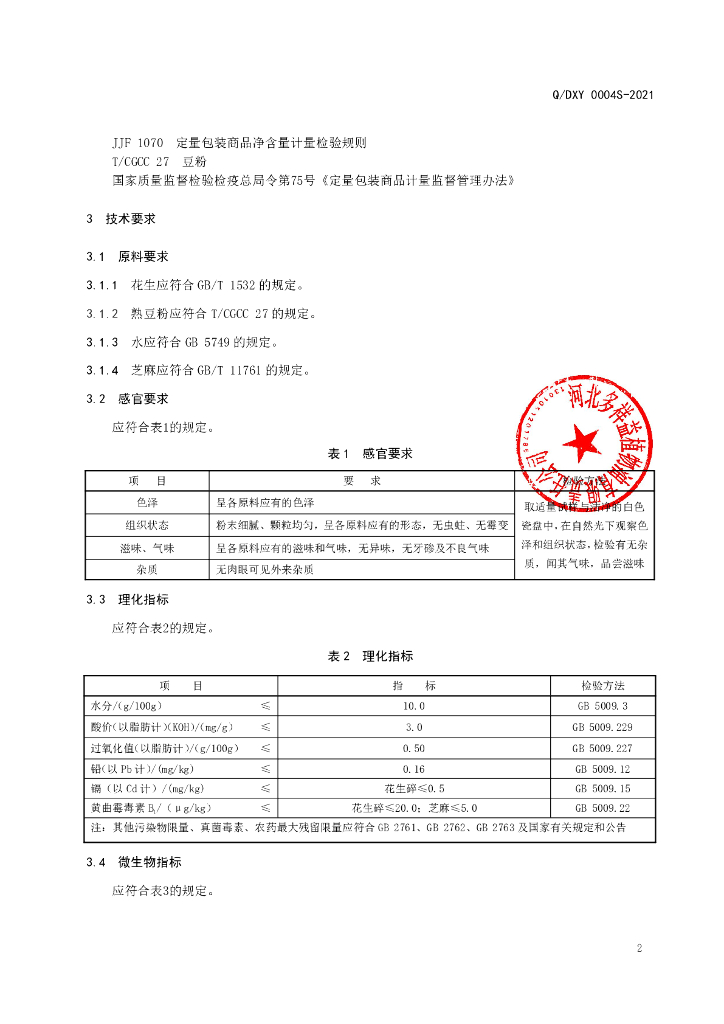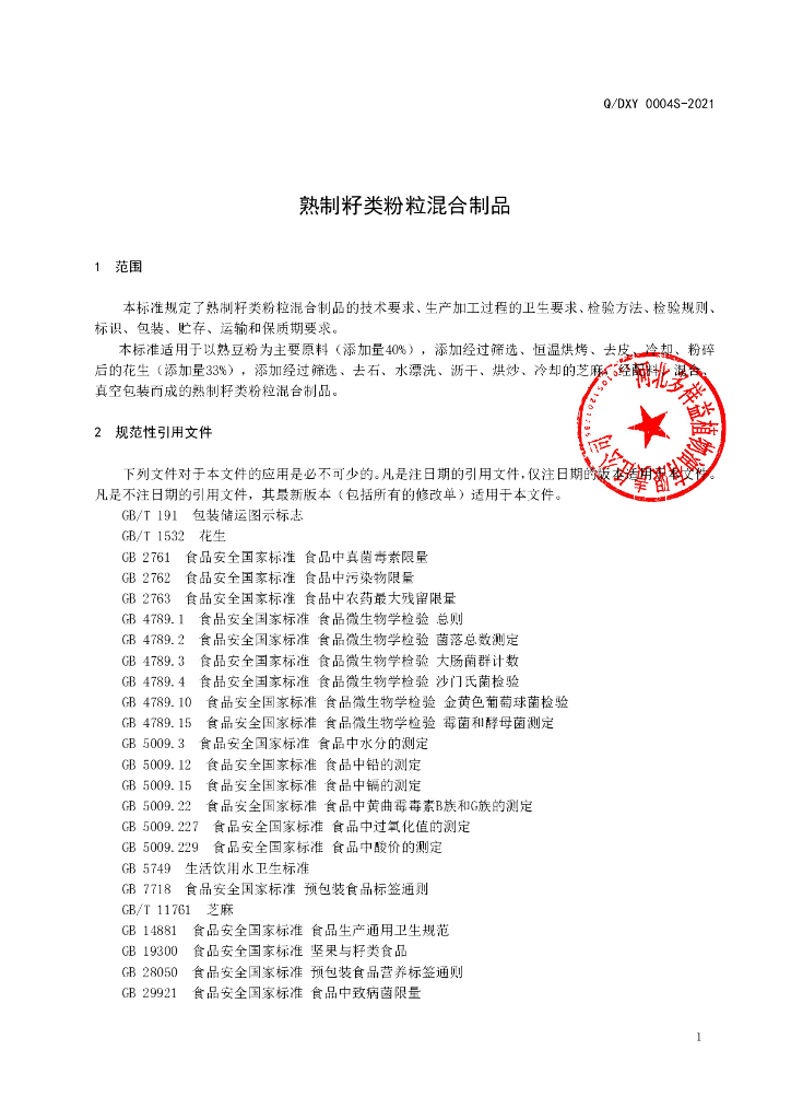 Q/DXY 0004S-2021 熟制籽类粉粒混合制品