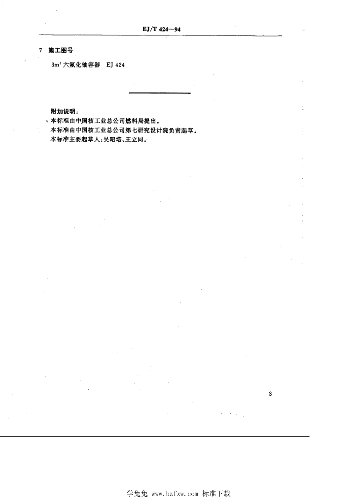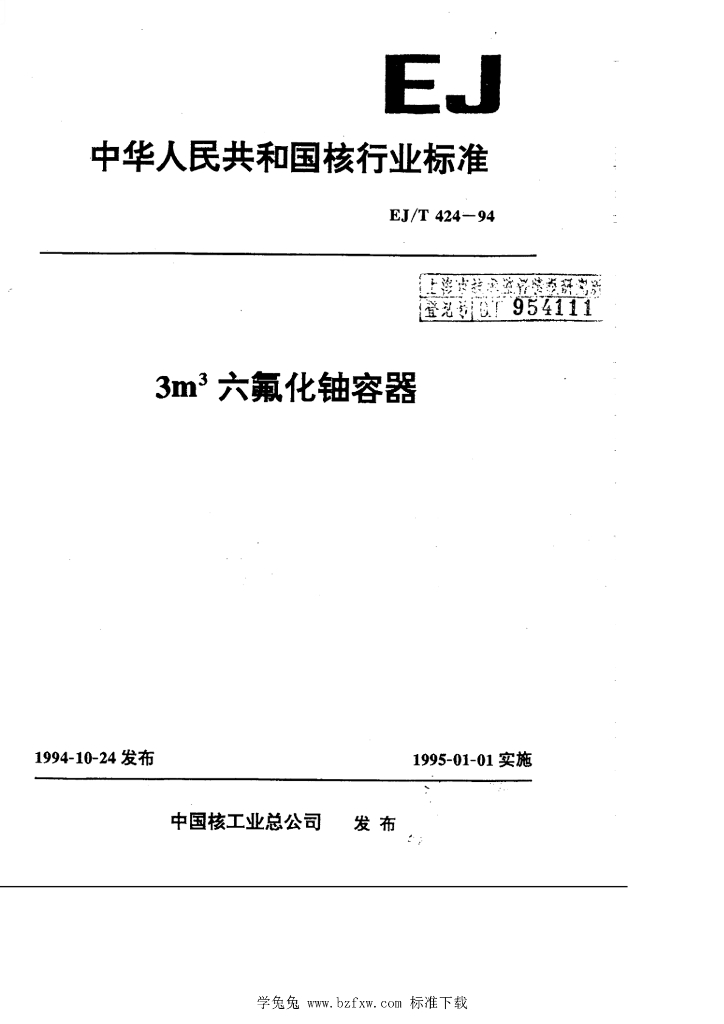 EJ/T 424-1994 3m×3六氟化铀容器