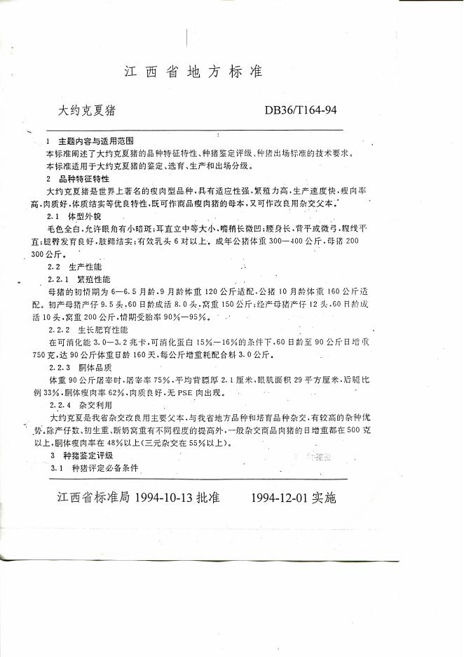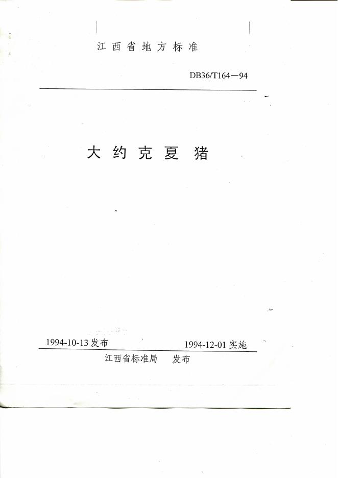 DB36/T 164-1994 大约克夏猪