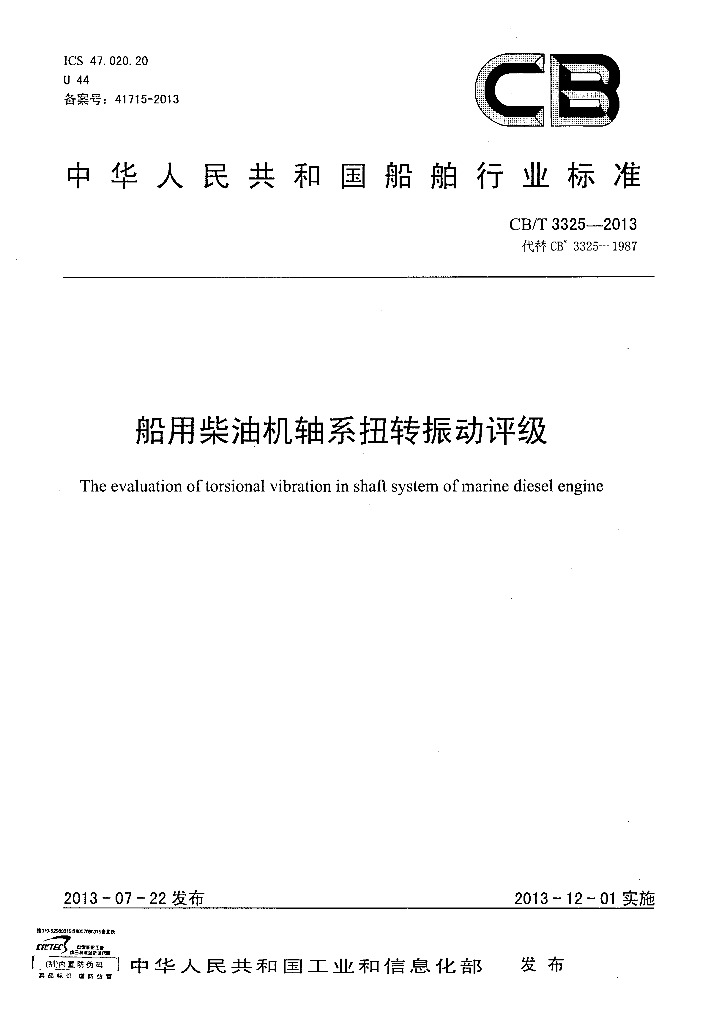 CB/T 3325-2013 船用柴油机轴系扭转振动评级