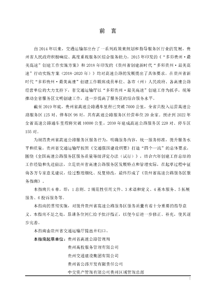 JTT 52/03-2020 贵州省高速公路服务区服务指南