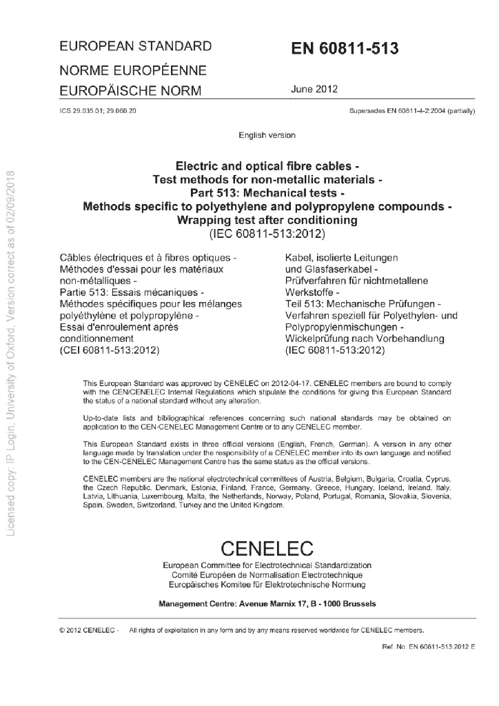 BS EN 60811-513:2012 电缆和光缆 非金属材料的试验方法 第513部分:机械性能试验 聚乙烯和聚丙烯化合物专用方法 缠绕试验条件