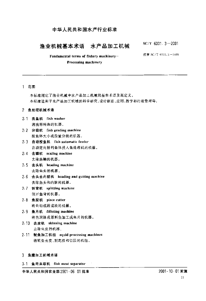 SC/T 6001.3-2001 渔业机械基本术语 水产品加工机械