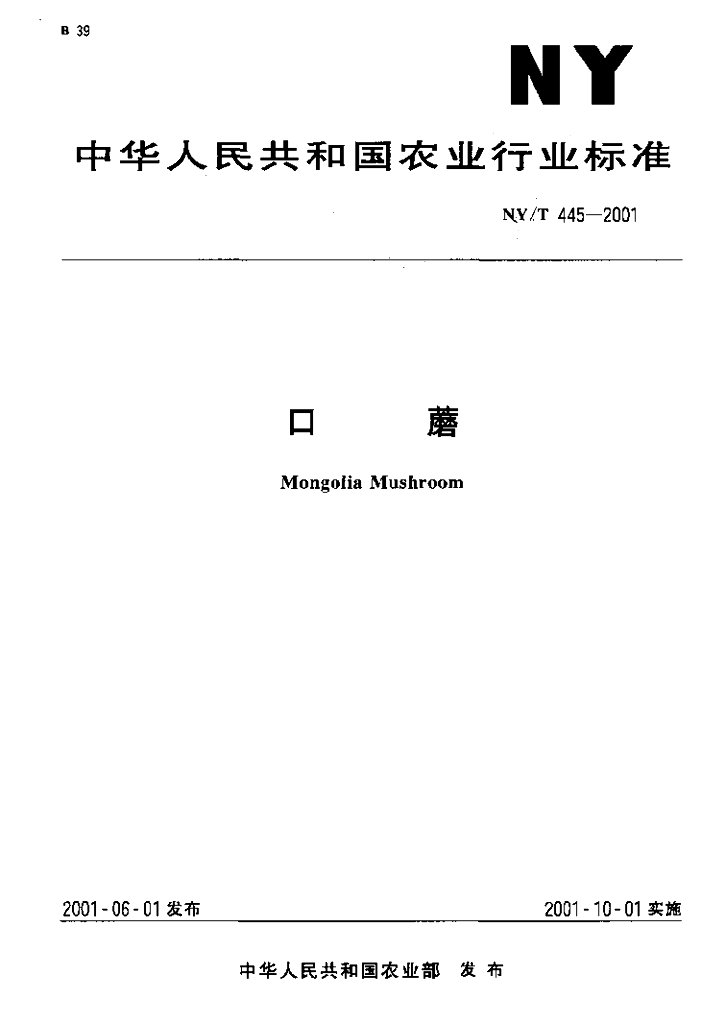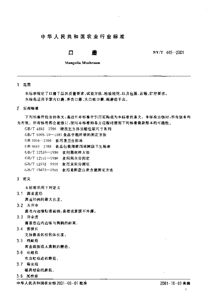 NY/T 445-2001 口蘑