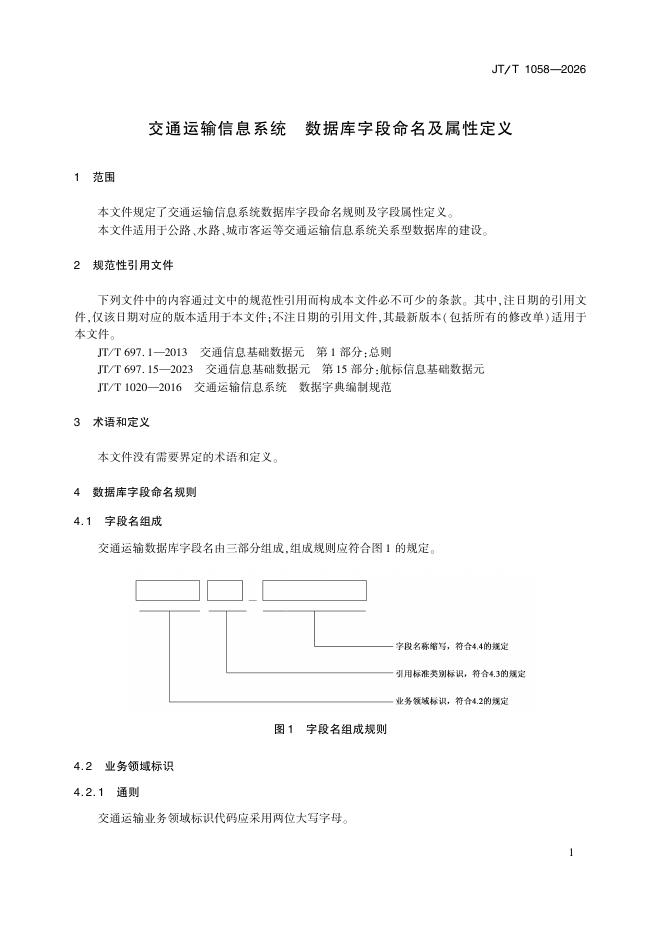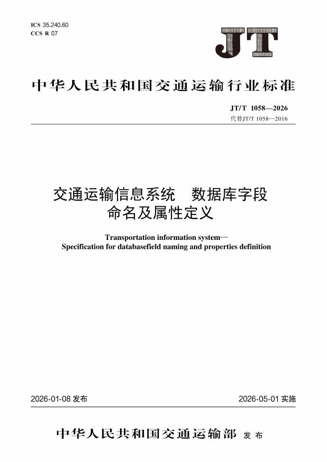 JT/T 1058-2026 交通运输信息系统 数据库字段命名及属性定义