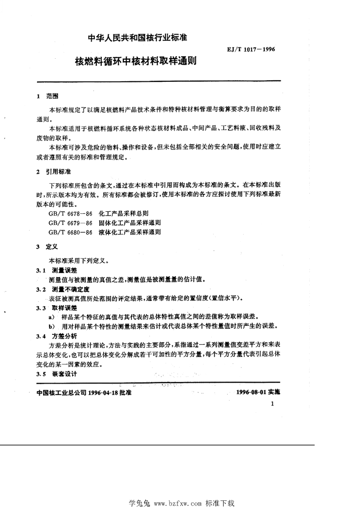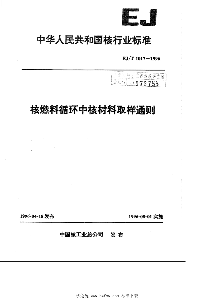 EJ/T 1017-1996 核燃料循环中核材料取样通则