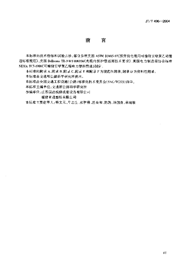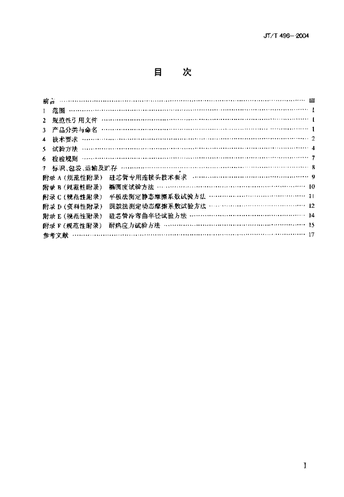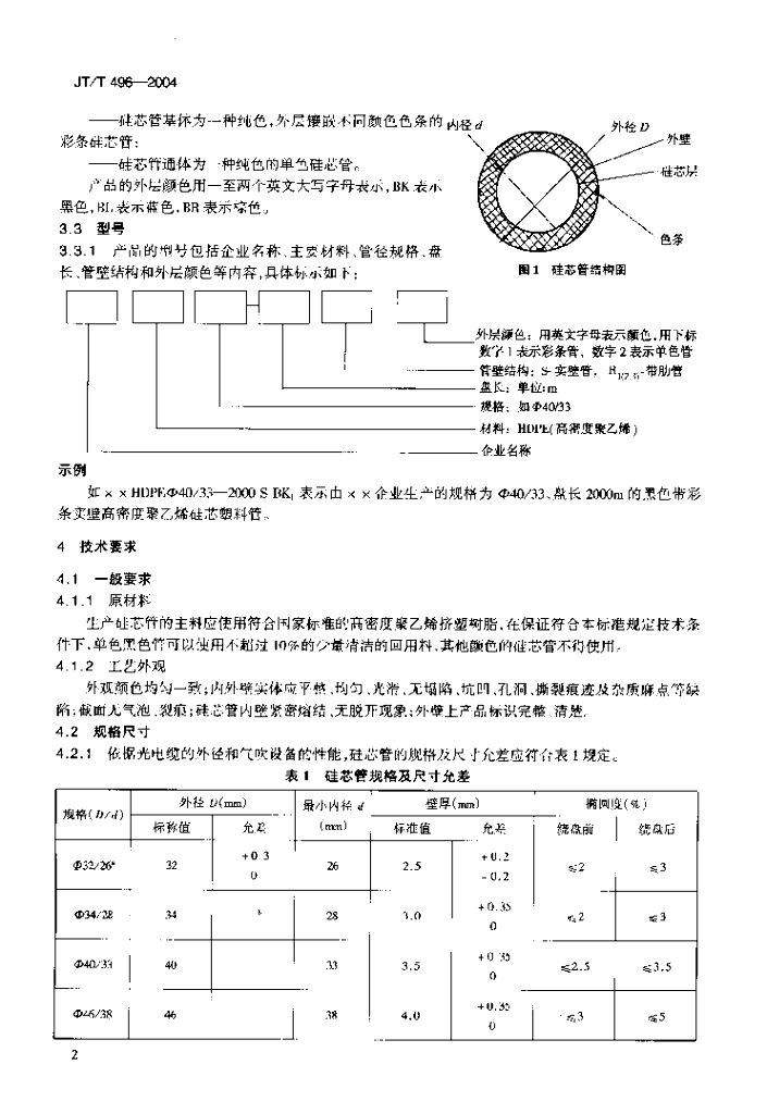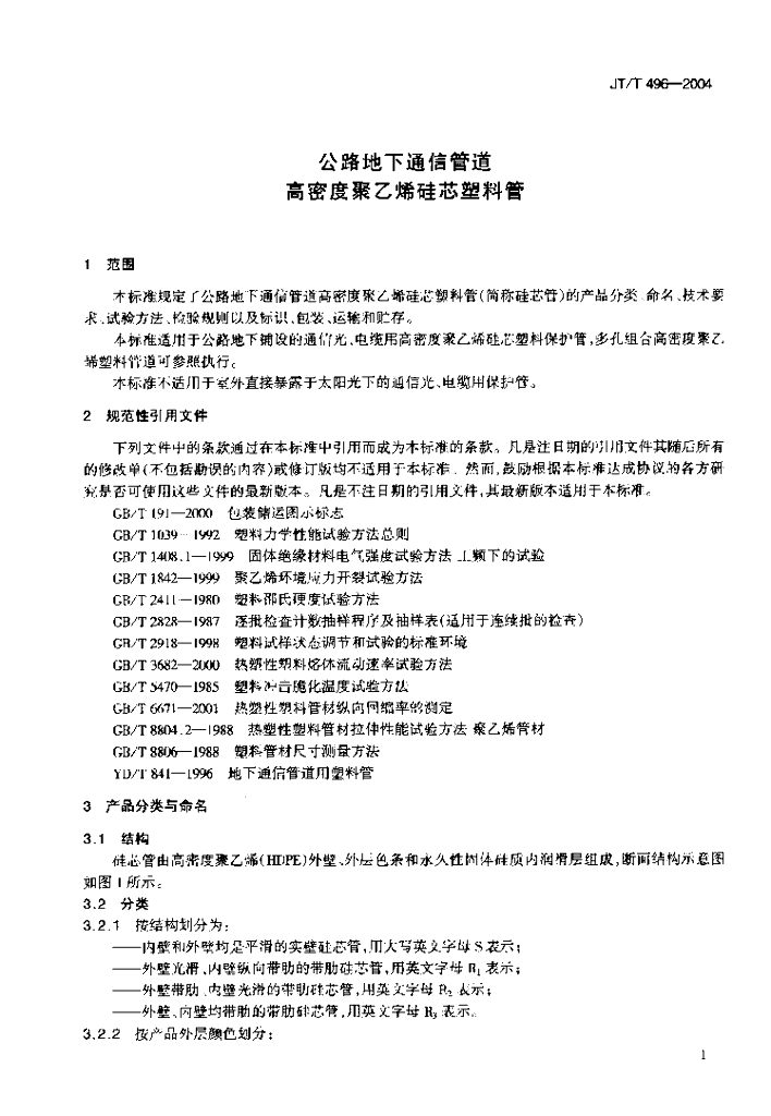 JT/T 496-2004 公路地下通信管道高密度聚乙烯硅芯塑料管