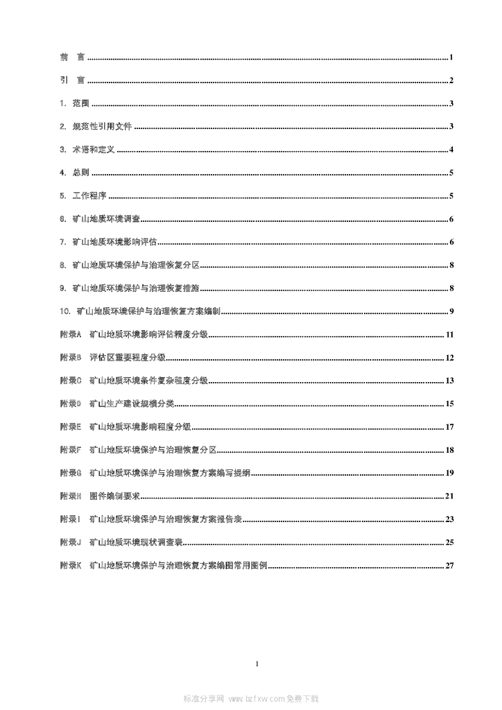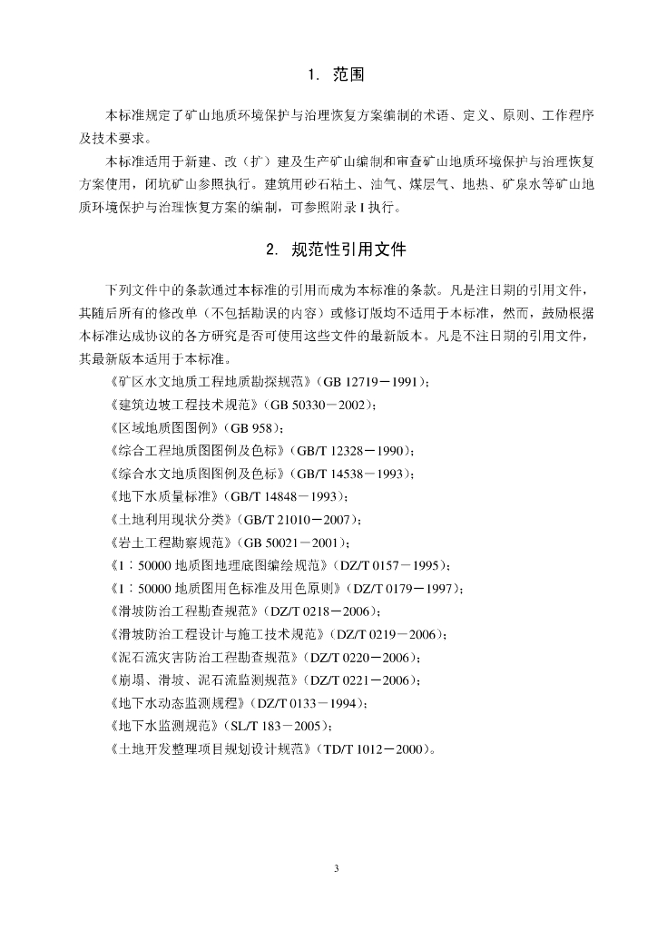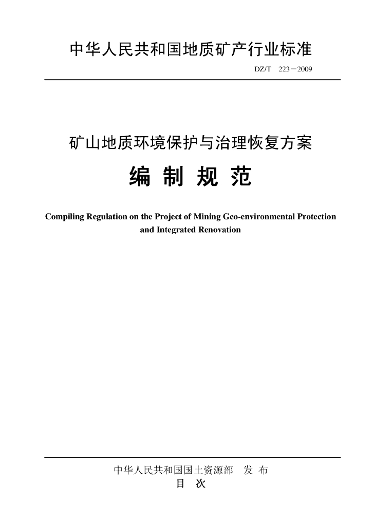 DZ/T 223-2009 矿山地质环境保护与治理恢复方案编制规范