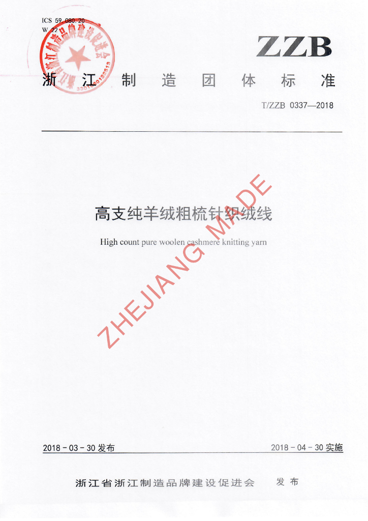 浙江中鼎纺织有限公司、浙江省纺织品标准化技术委员会、浙江省毛纺织行业协会、浙江玛戈利亚羊绒世家有限公司、绍兴市偏门毛纺织有限公司、桐乡市星马针织制衣有限公司