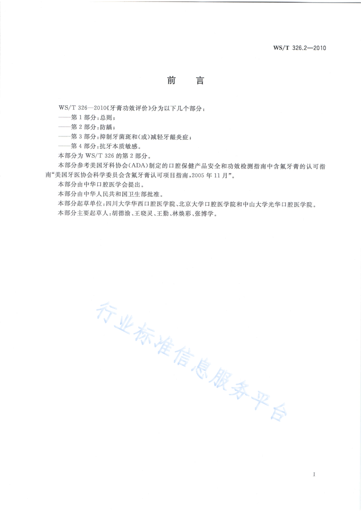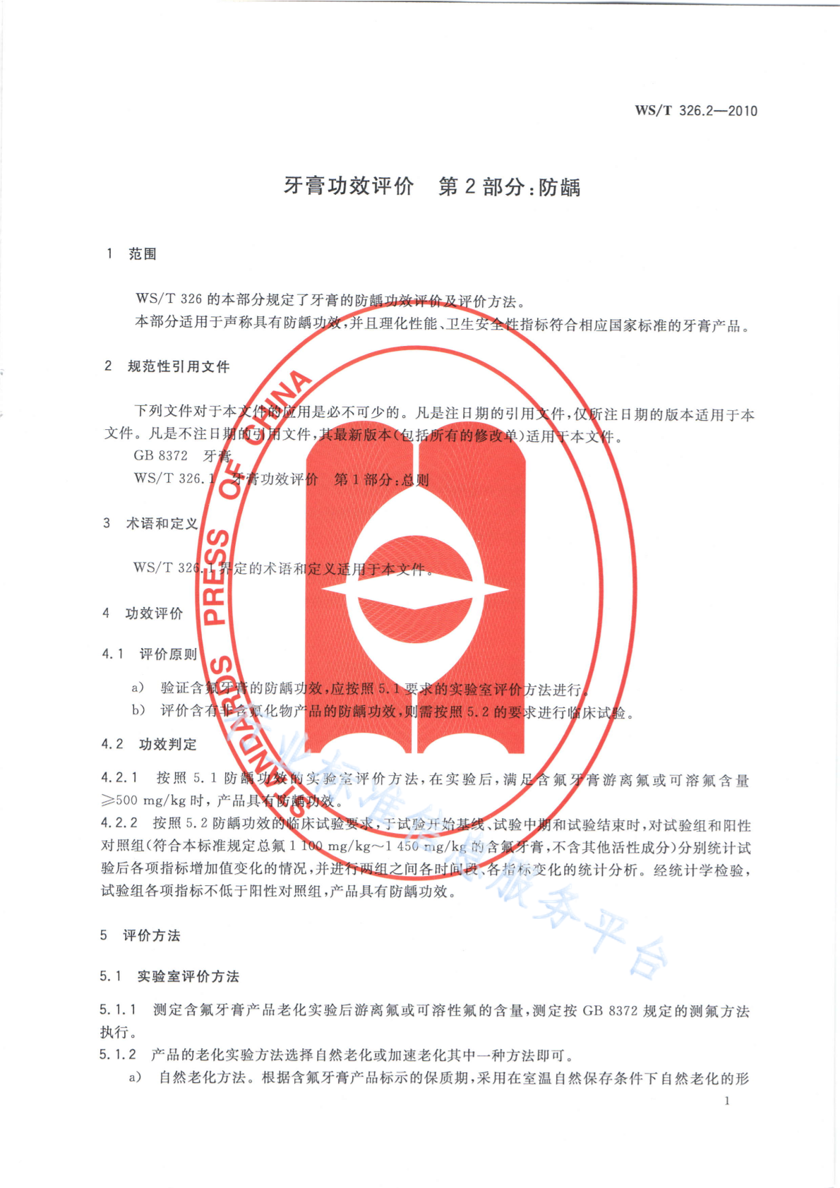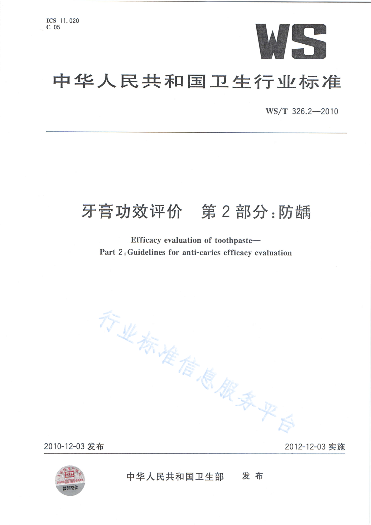WS/T 326.2-2010 牙膏功效评价 第2部分:防龋