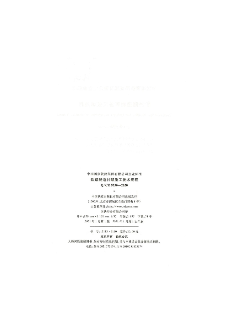 Q/CR 9250-2020 铁路隧道衬砌施工技术规范