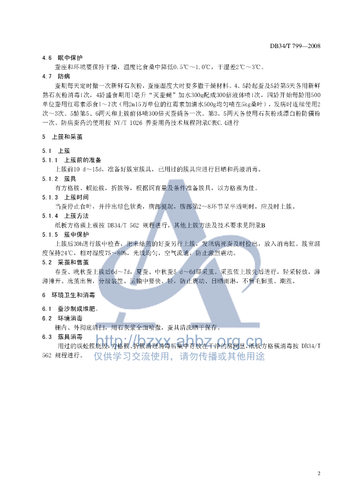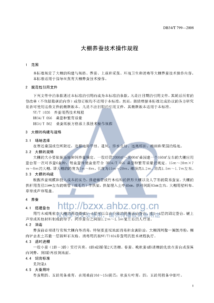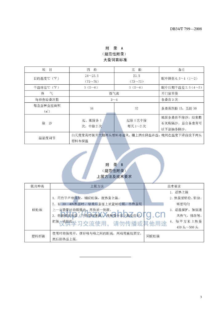 DB34/T 799-2008 大棚养蚕技术操作规程
