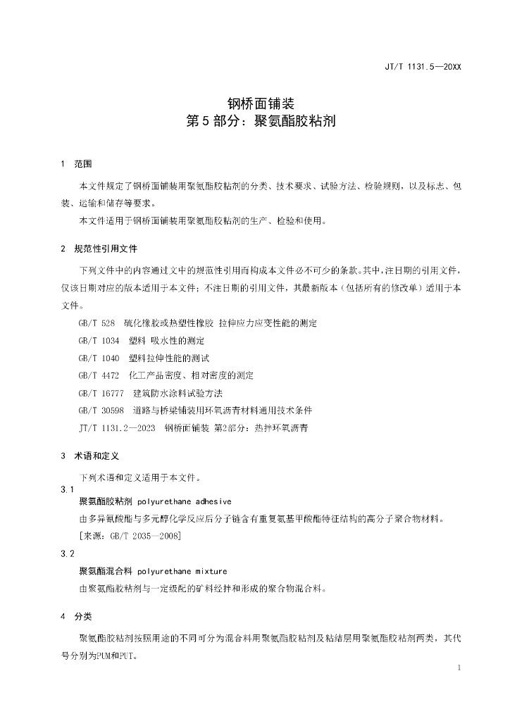 JT/T 1131.5-20XX 钢桥面铺装 第5部分:聚氨酯胶粘剂(征求意见稿)