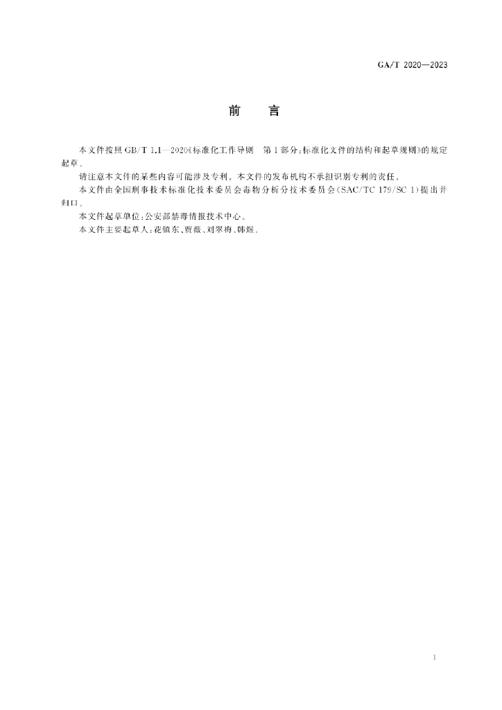 GA/T 2020-2023 法庭科学 疑似毒品中2-氟苯丙胺等168种新精神活性物质检验 气相色谱-质谱、红外光谱和液相色谱法