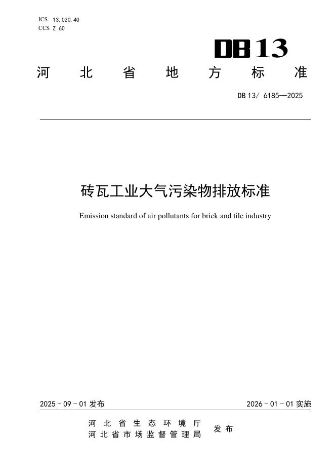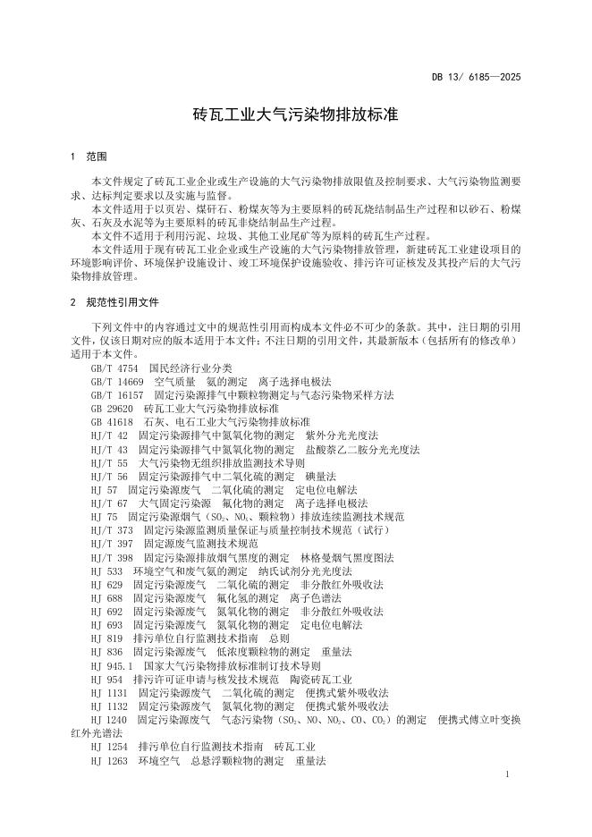 DB13/ 6185-2025 砖瓦工业大气污染物排放标准