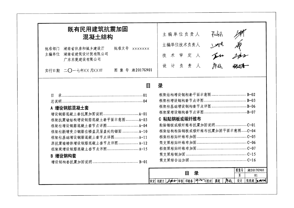湘2017G901 既有民用建筑抗震加固混凝土结构图集