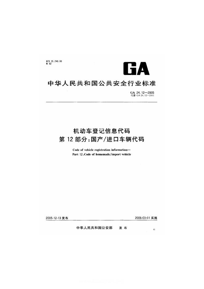 GA 24.12-2001 机动车登记信息代码 第12部分:国产/进口车辆代码