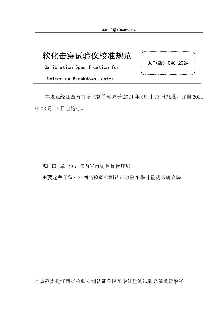 - 11JJF(赣)040-2024 软化击穿试验仪校准规范