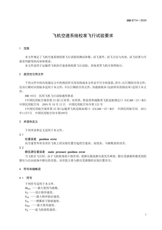 HB 8714-2024 飞机空速系统校准飞行试验要求