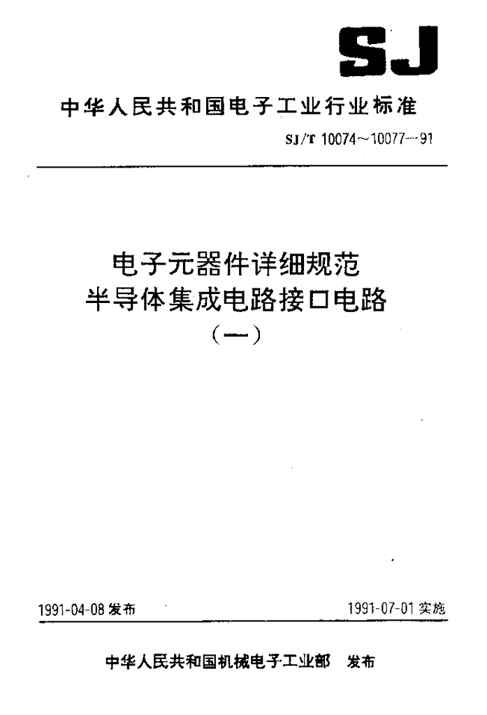 SJ/T 10075-1991 电子元器件详细规范 半导体集成电路CJ75361型双TTL-MOS驱动器