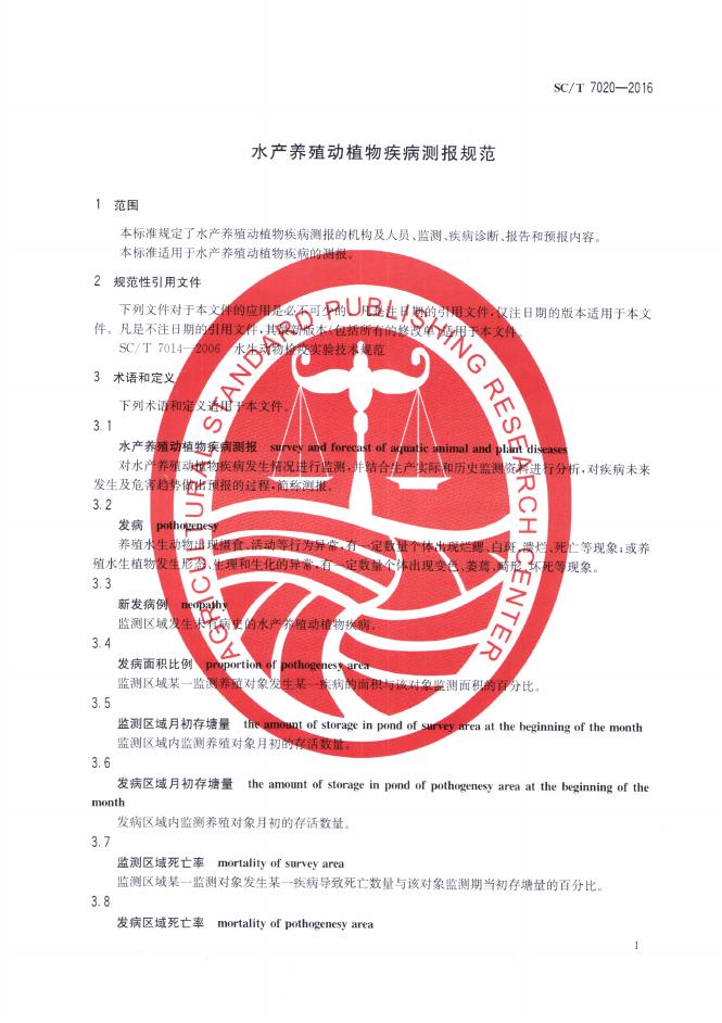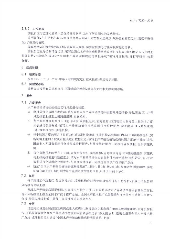 SC/T 7020-2016 水产养殖动植物疾病测报规范