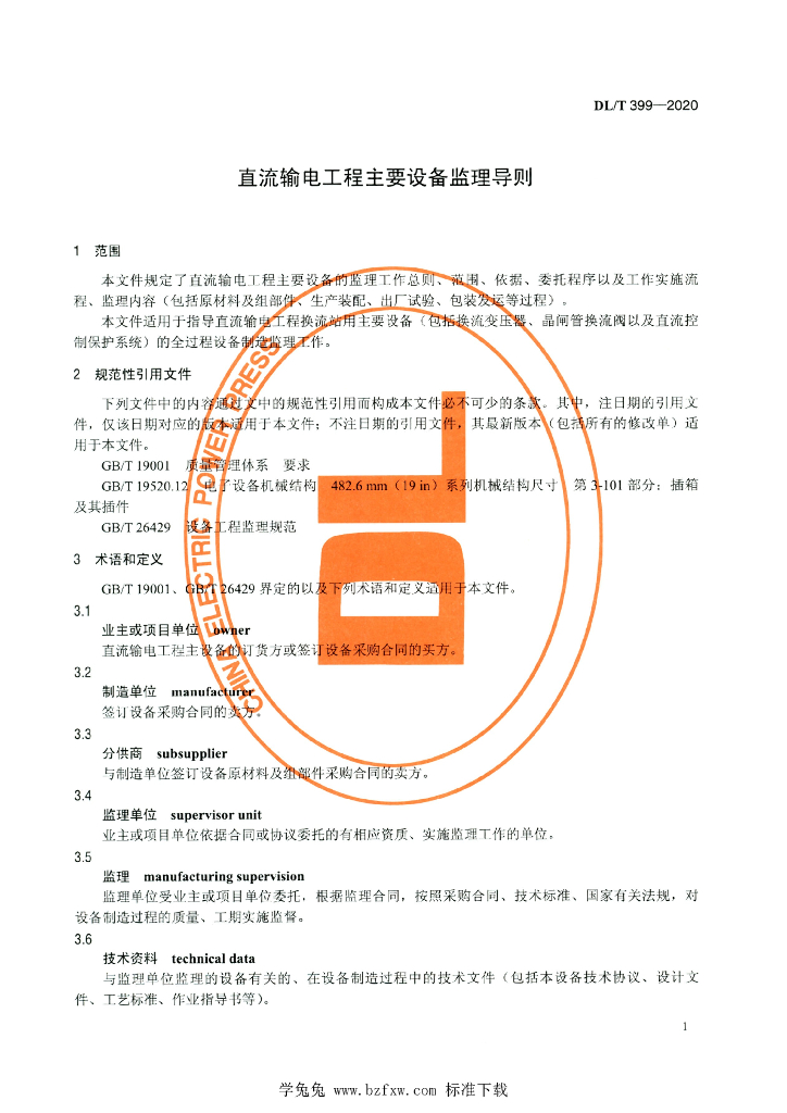 DL/T 399-2020 直流输电工程主要设备监理导则
