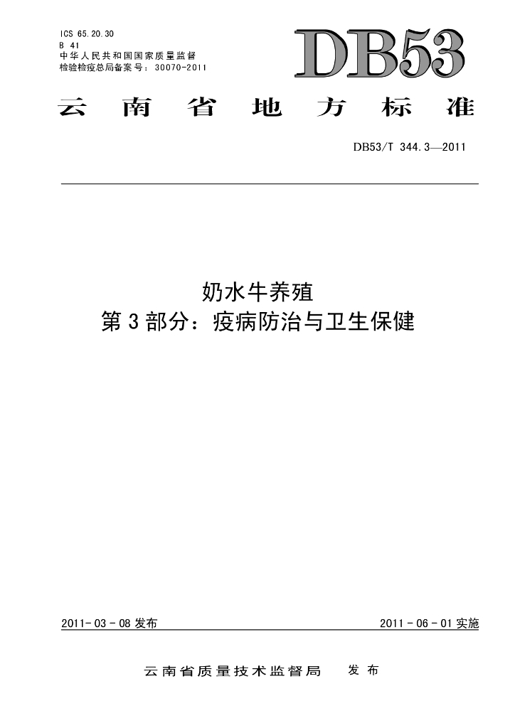 DB53/T 344.3-2011 奶水牛养殖 第3部分:疫病防治与卫生保健