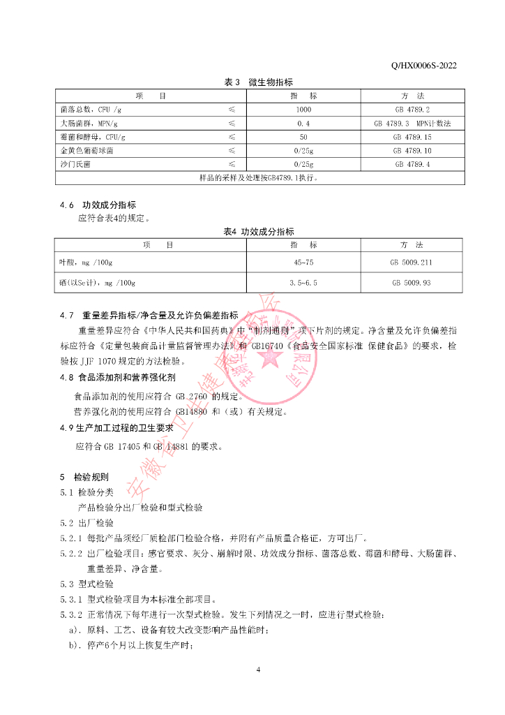 Q/HX 0006S-2022 华信牌叶酸硒片