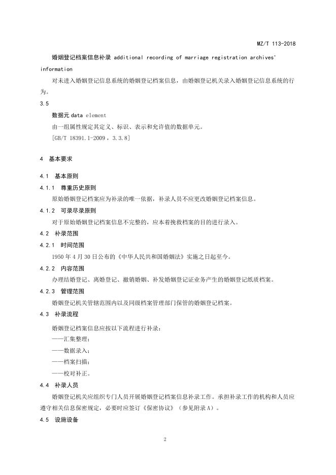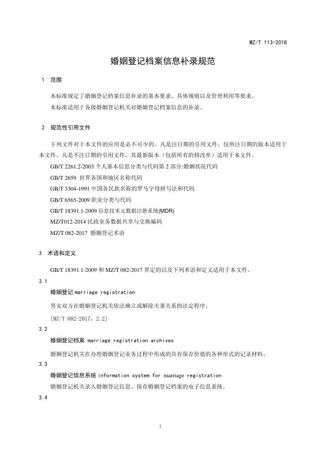 MZ/T 113-2018 婚姻登记档案信息补录规范