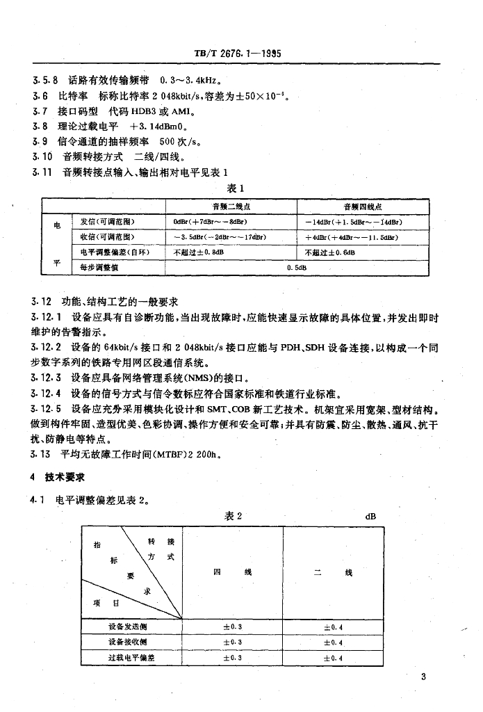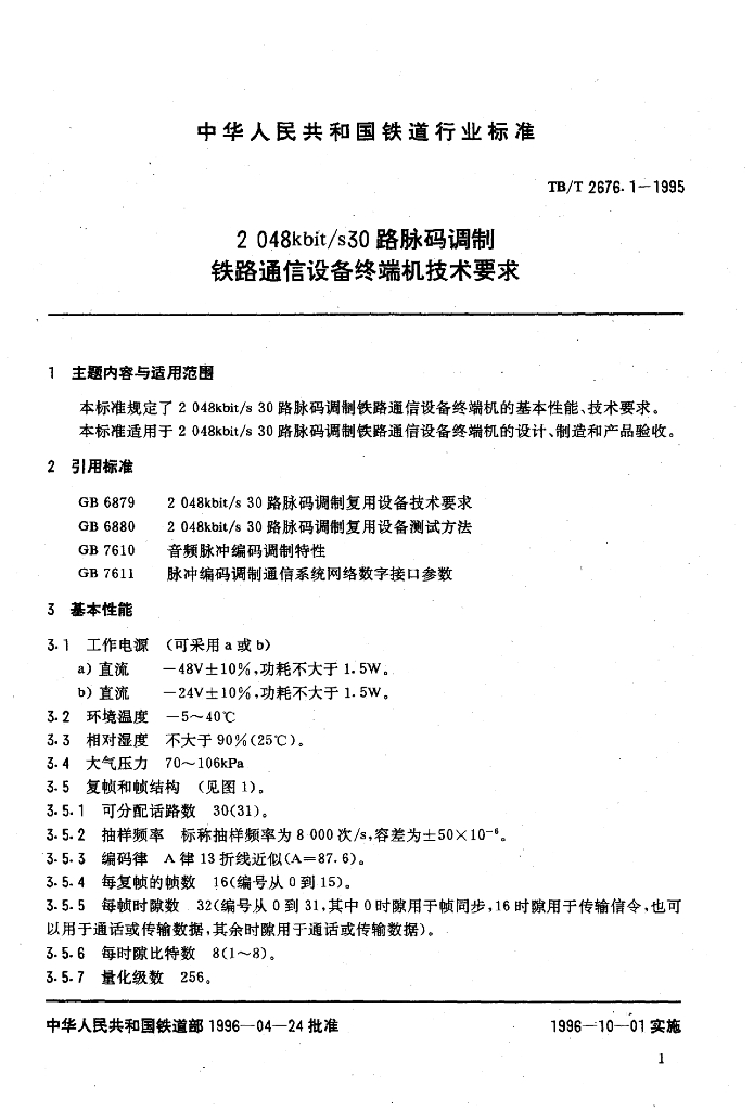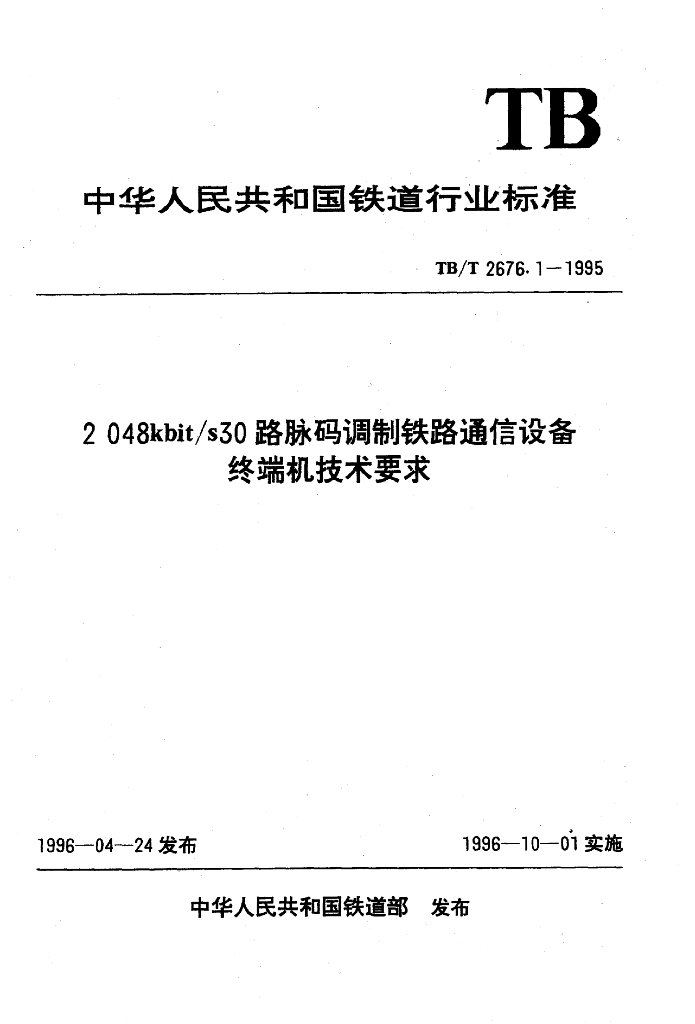 TB/T 2676.1-1995 2048kbit/s30路脉码调制铁路通信设备终端机技术要求