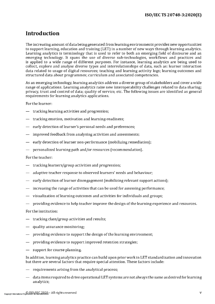 ISO/IEC TS 20748-3-2020 学习、教育和培训用信息技术 学习分析互操作性 第3部分:数据互操作性指南