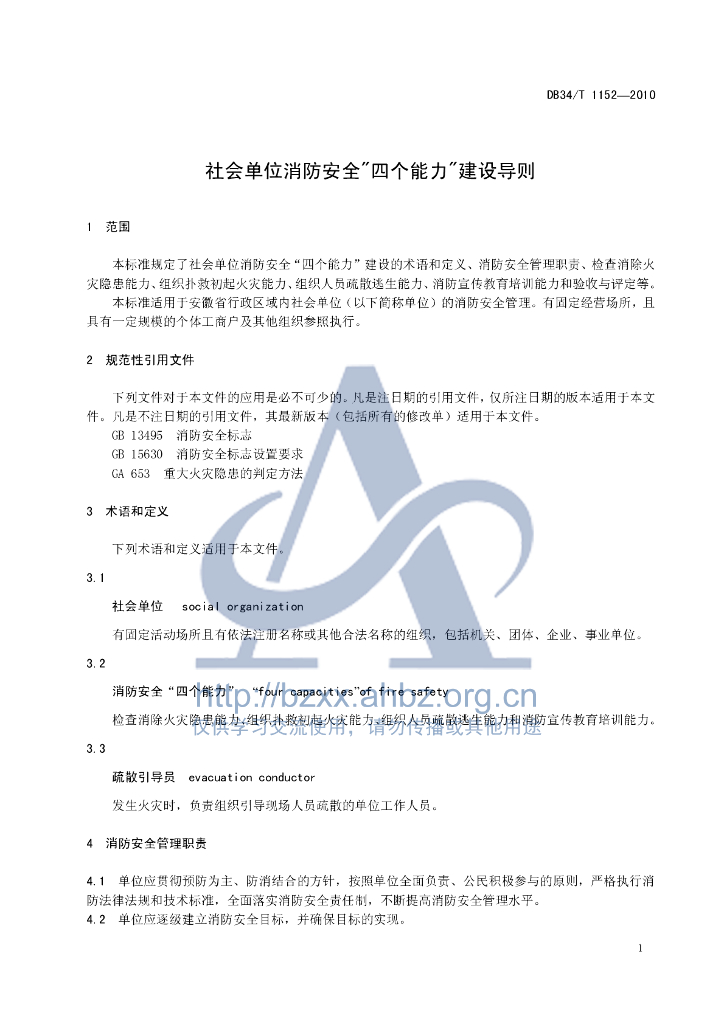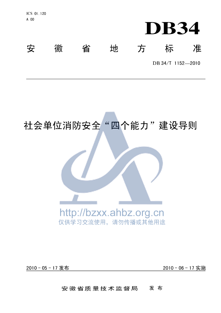 DB34/T 1152-2010 社会单位消防安全“四个能力”建设导则