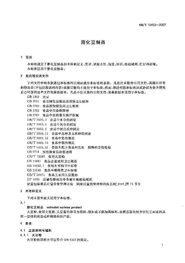 SB/T 10453-2007 膨化豆制品