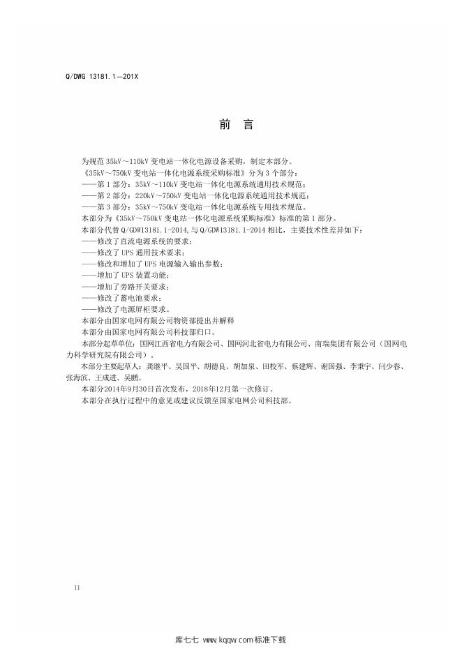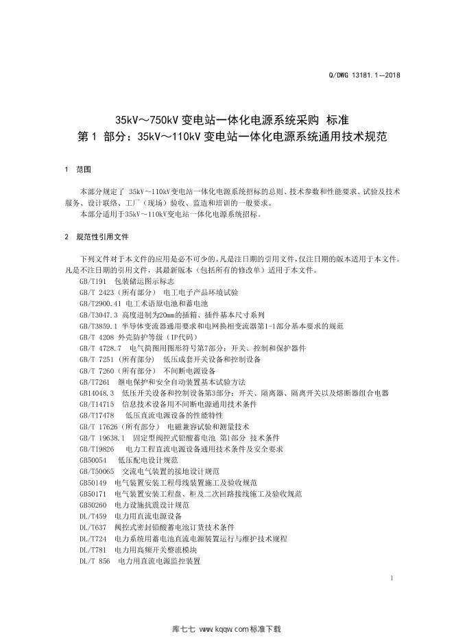 Q/GDW 13181.1-2018 35kV~110kV 变电站一体化电源系统采购标准 第1部分:通用技术规范