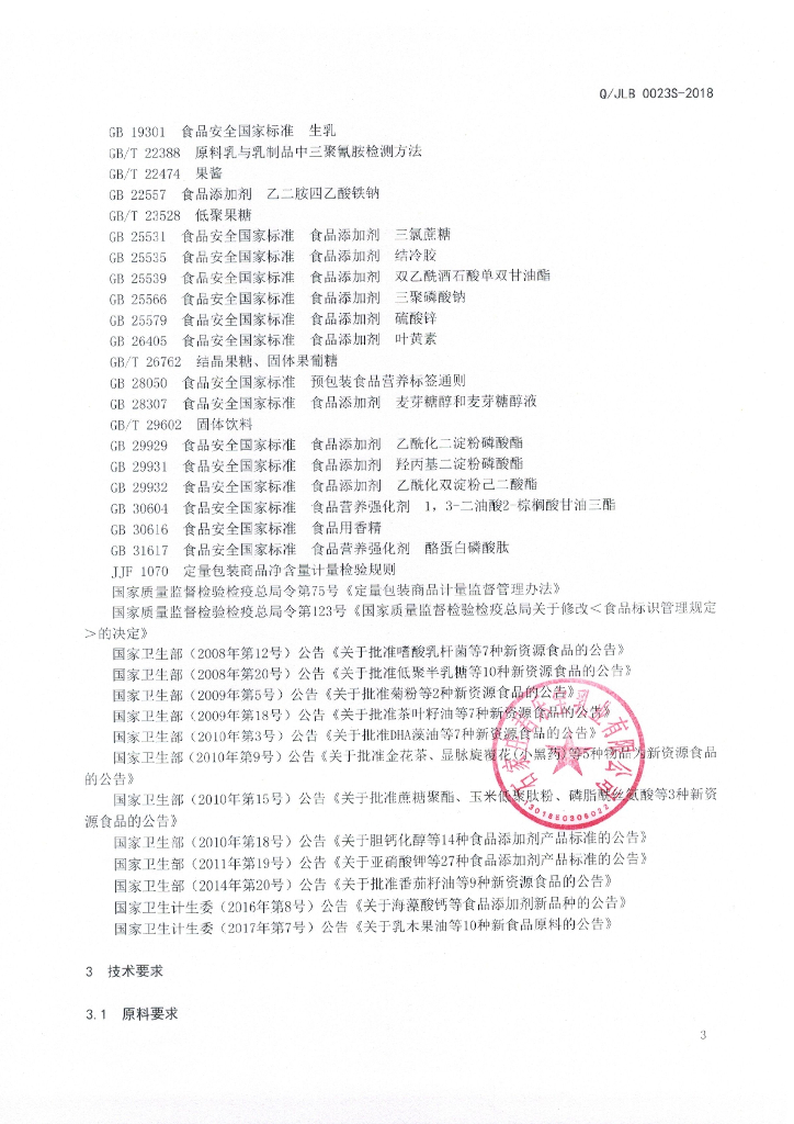 Q/JLB 0023S-2018 儿童配方牛奶(儿童用调制乳)