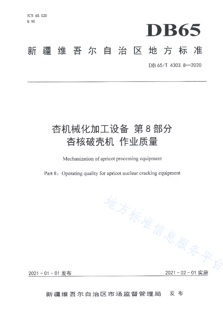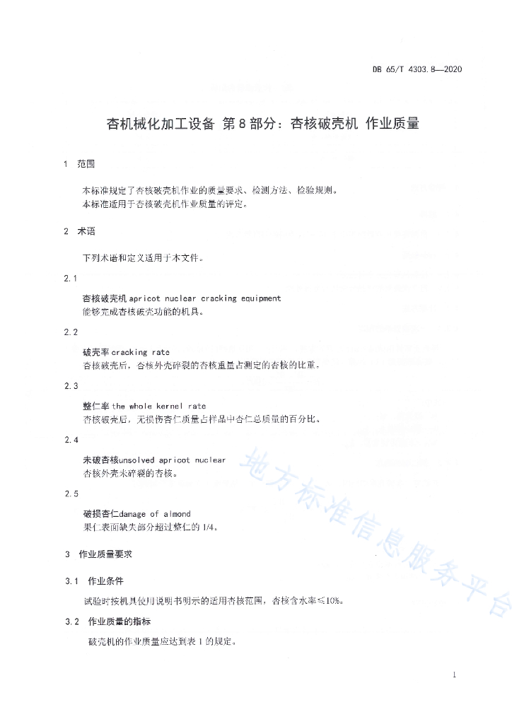 DB65/T 4303.8-2020 杏机械化加工设备 第8部分:杏核破壳机 作业质量