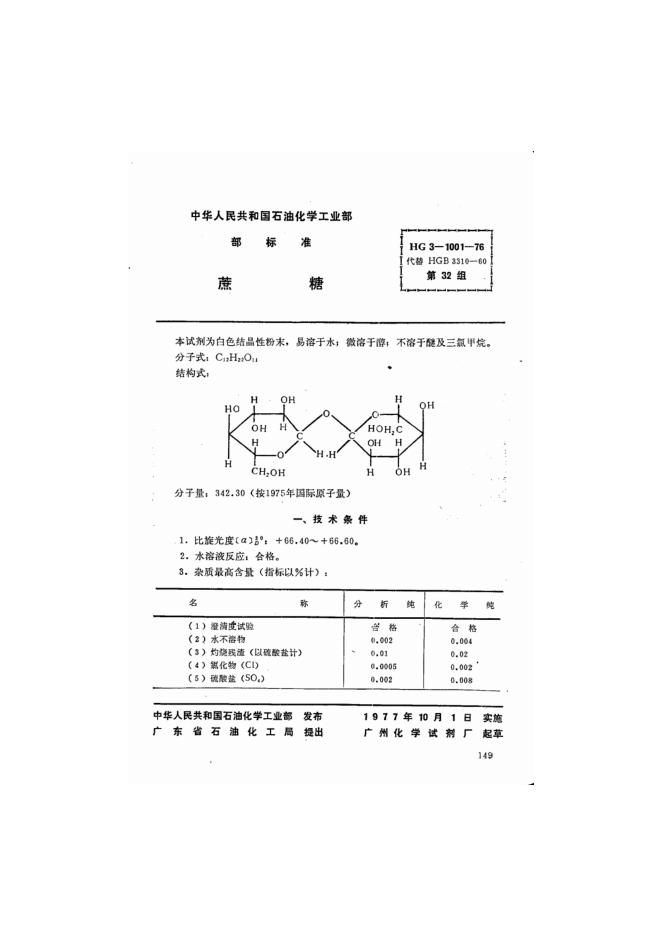 HG 3-1001-1976 化学试剂 蔗糖