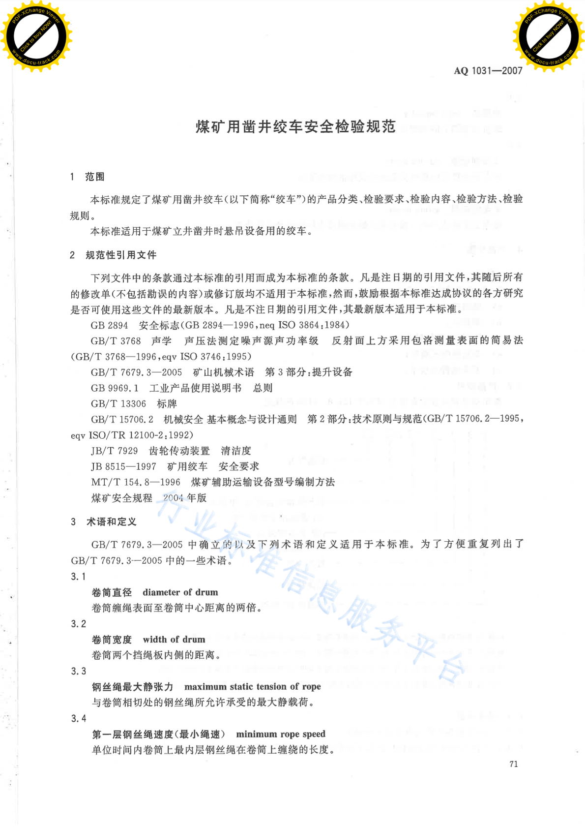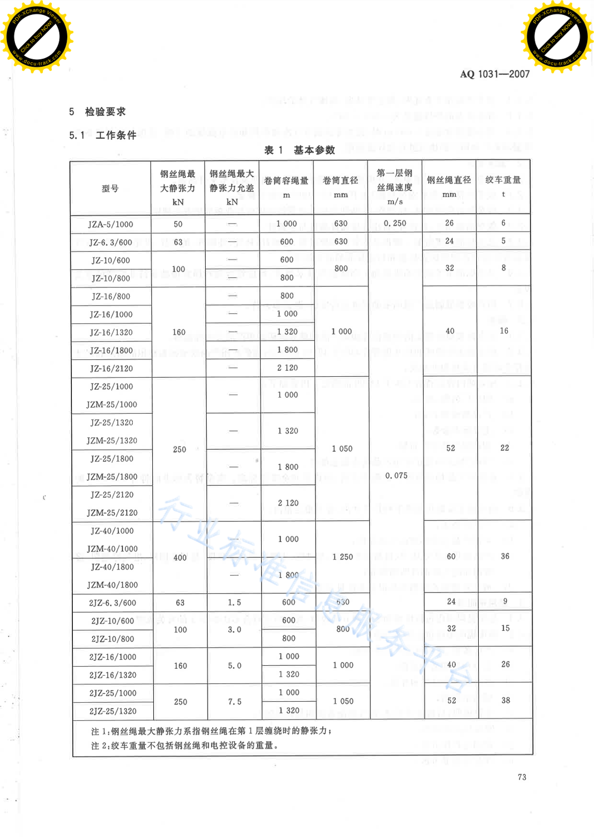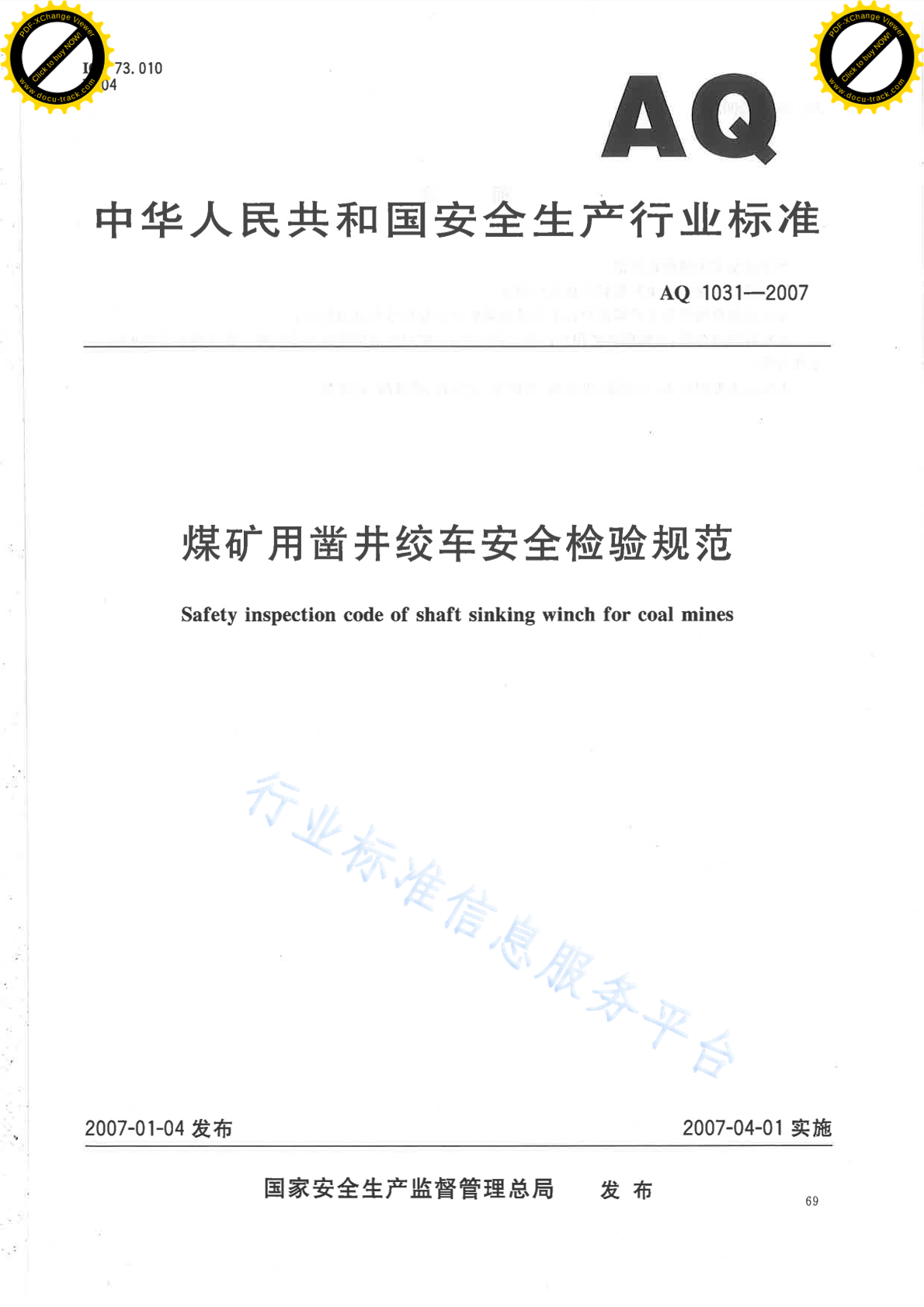 AQ 1031-2007 煤矿用凿井绞车安全检验规范