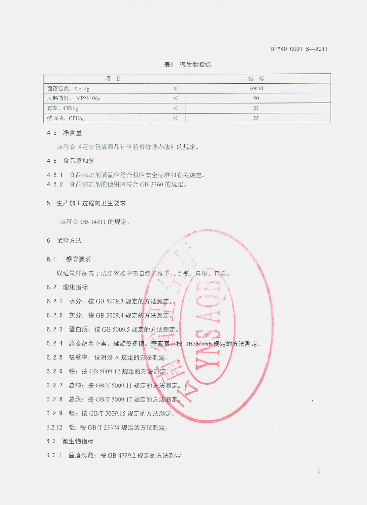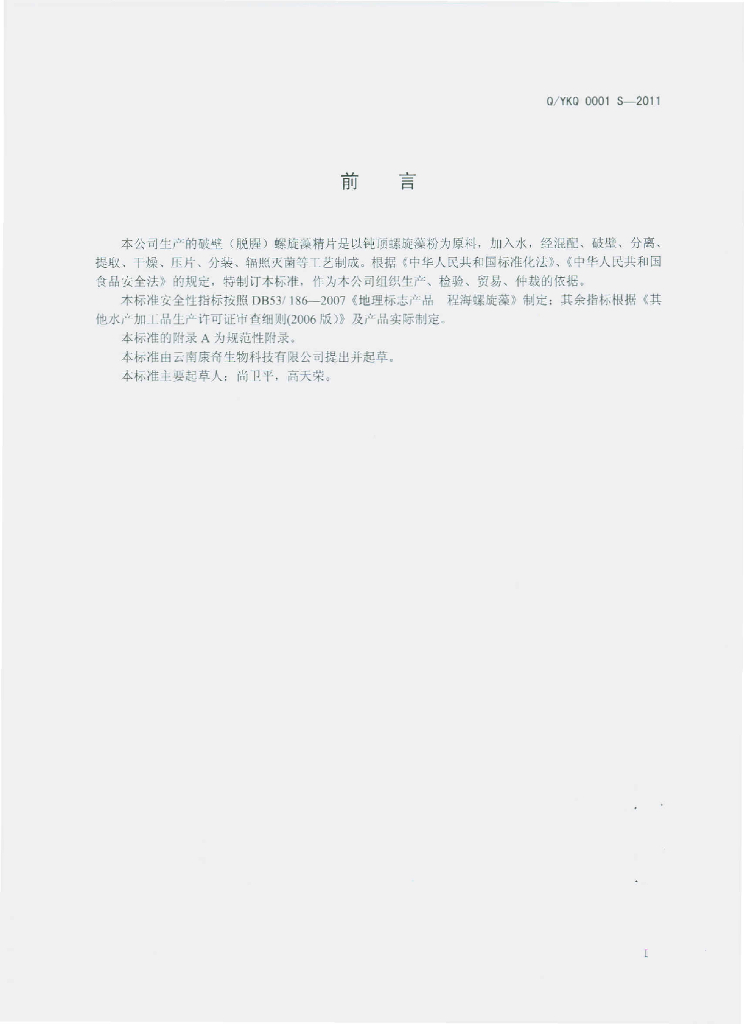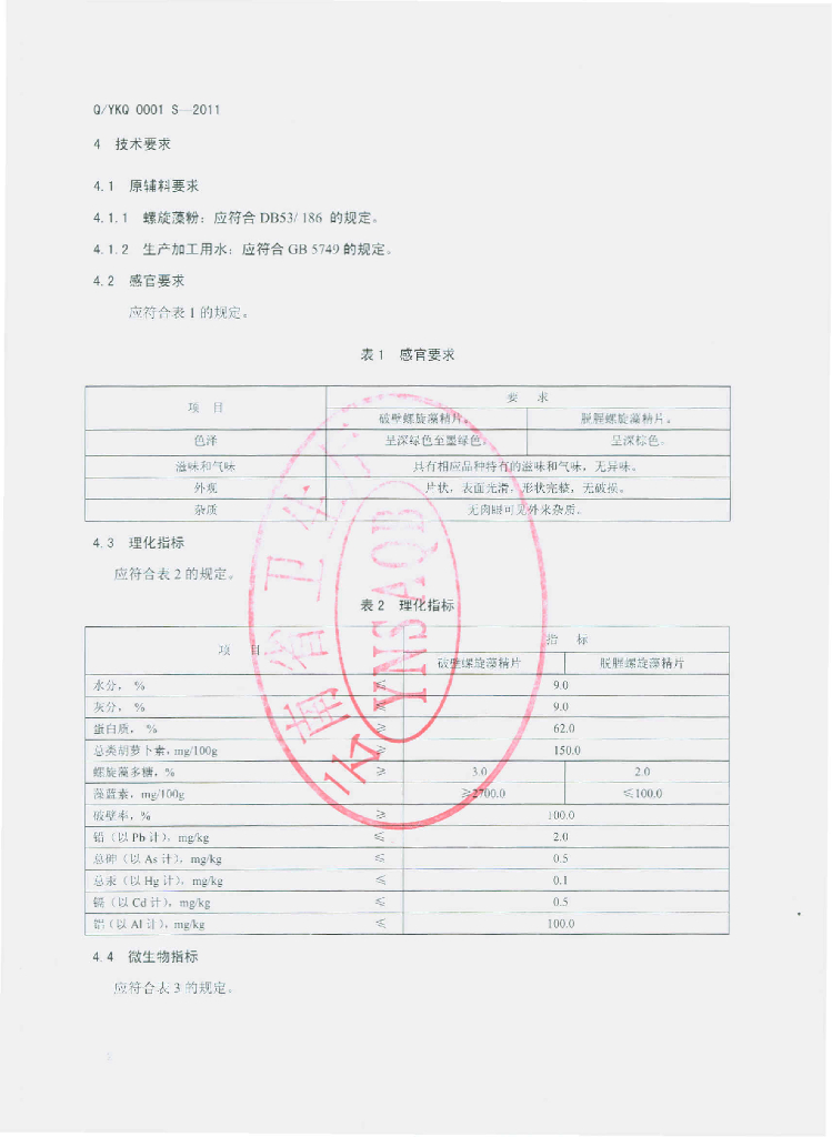 Q/YKQ 0001S-2011 破壁(脱腥)螺旋藻精片
