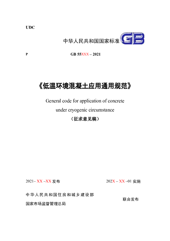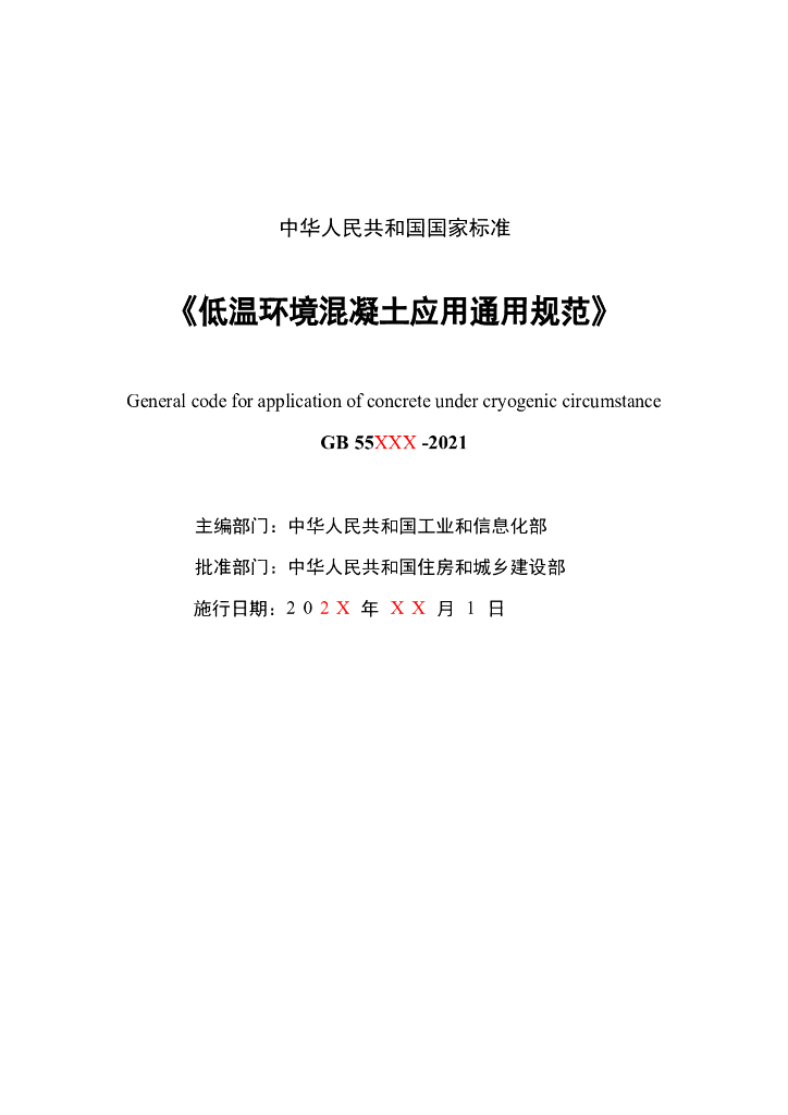GB 55XXX-2021 低温环境混凝土应用通用规范(征求意见稿)