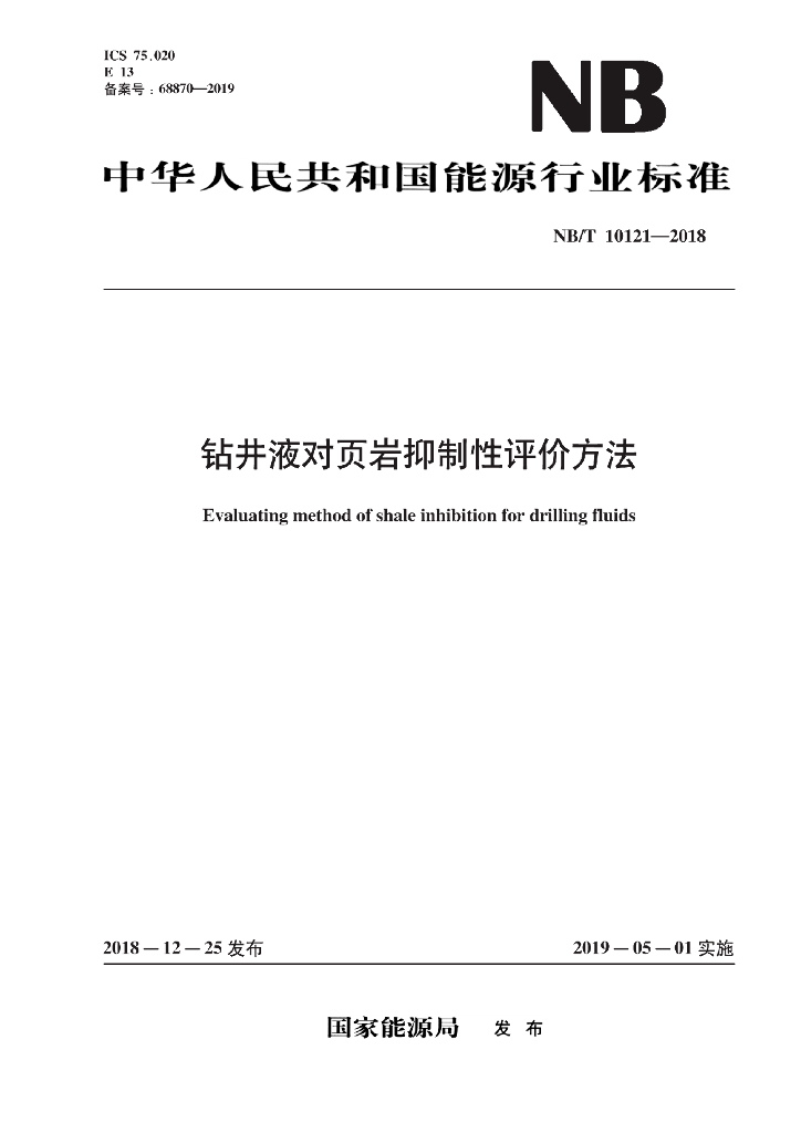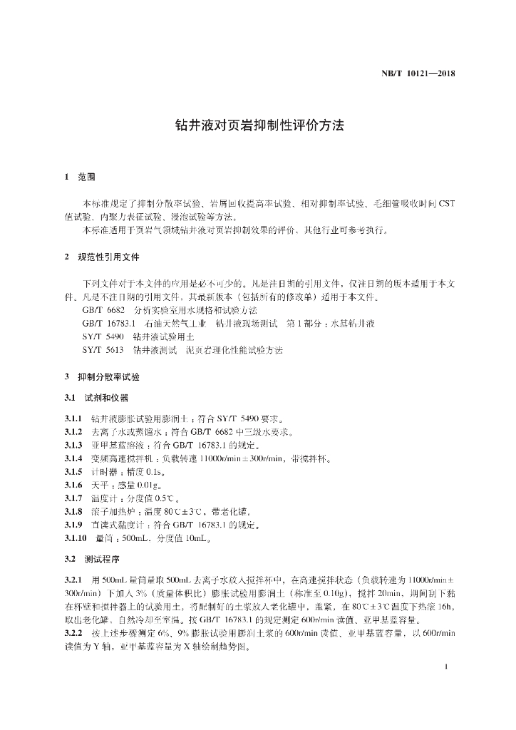 NB/T 10121-2018 钻井液对页岩抑制性评价方法