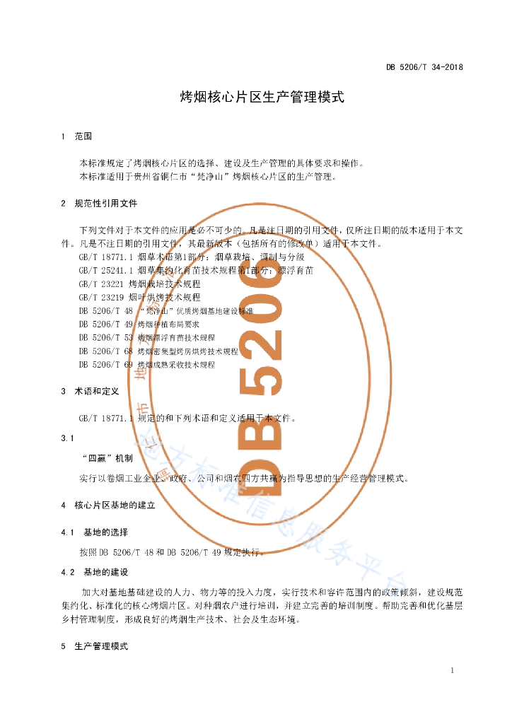 DB5206/T 34-2018 烤烟核心片区生产管理模式