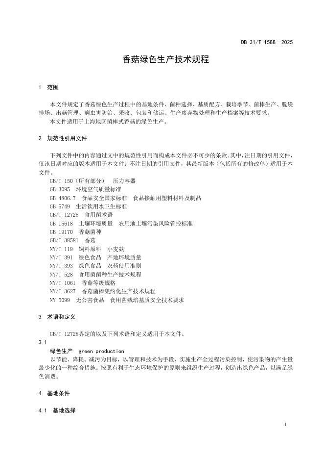 DB31/T 1588-2025 香菇绿色生产技术规程